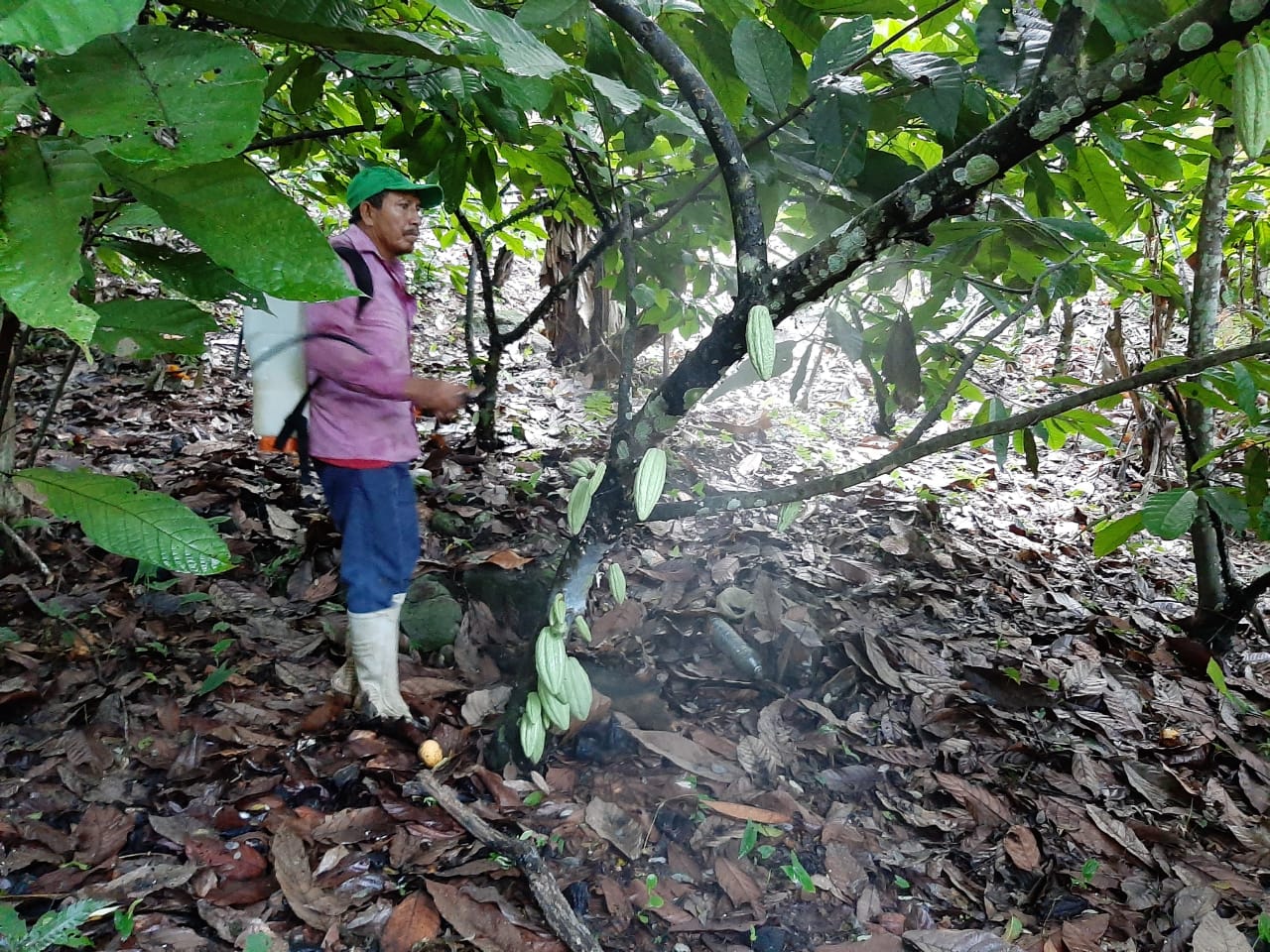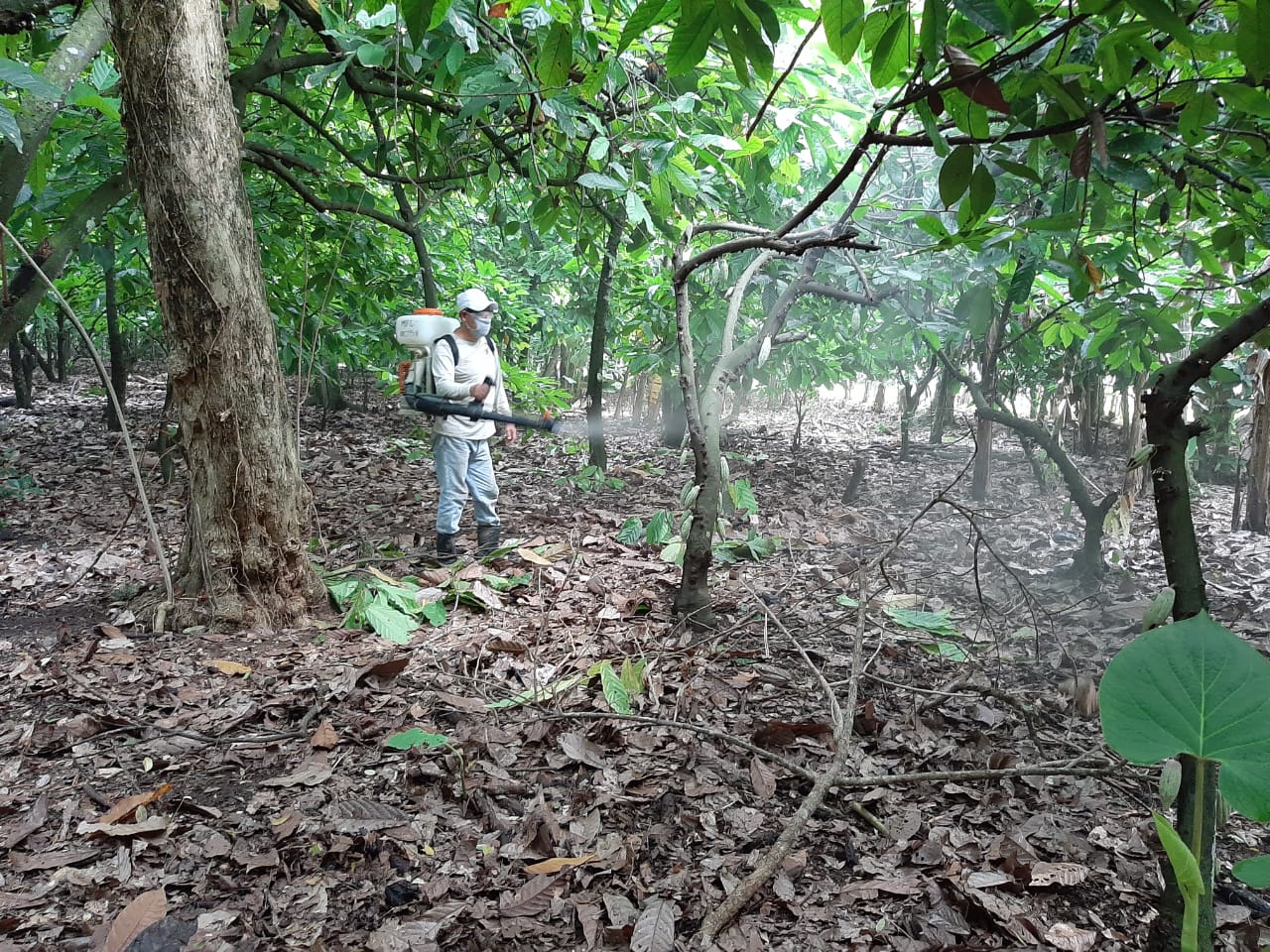 Esta acción se realizará una vez que el productor presente un programa de manejo cultural en su plantación de cacao, y presente incidencia de moniliasis del cacao. Se utilizará el hongo Trichoderma harzianum a una concentración de 1x108 esporas /hectárea, del cual se atenderá 500 hectáreas con dos aplicaciones, estas aplicaciones se realizarán por las mañanas o en su caso por las tardes, además se determinará el pH del agua; en caso de tener PH ácido se colocará un alcalinizante que será una aportación del productor ya que los hongos no toleran aguas acida, cabe destacar que se atenderá una superficie de 197 hectáreas con insumo stock del ejercicio 2020 y 803 hectáreas se atenderá con insumo del ejercicio 2021.